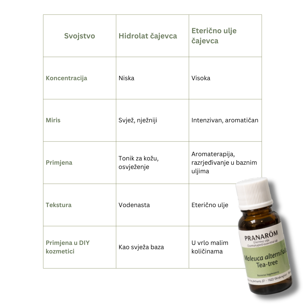 Koja je razlika između eteričnog ulja i hidrolata čajevca?
