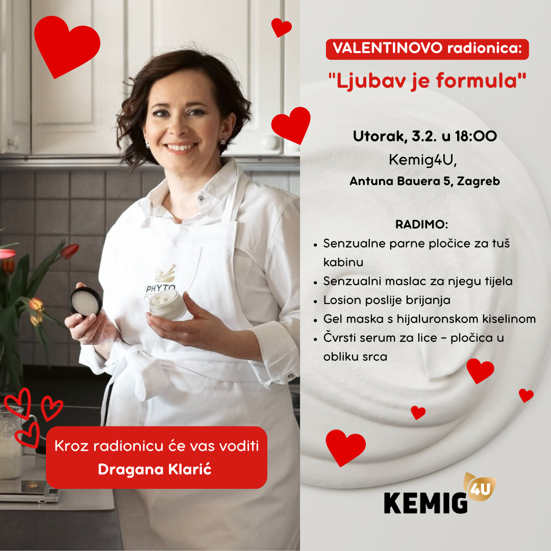 VALENTINOVO radionica: "Ljubav je formula" KADA? Utorak, 3.2. u 18:00 GDJE? Kemig4U, Antuna Bauera 5, Zagreb
